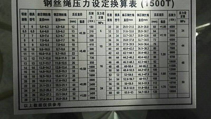 首先模具和鋁套型號是必須對應(yīng)的,比如6mm鋁套就用6#壓套機(jī)模具,8mm鋁套就用8#模具,而鋼絲繩的尺寸不一定是整數(shù),廠家配的模具正常都是偶數(shù)配,壓到?jīng)]對應(yīng)尺寸的鋼絲繩,這點(diǎn)不用擔(dān)心,模具都是有壓制范圍的,正常用1mm的上下范圍,比如15mm的鋼絲繩,可以用14mm或16mm的模具,總之最好的分別方法就是,不管鋼絲繩的尺寸是多少,找數(shù)值離得最近的模具就壓就可以了。還有一個重點(diǎn),剛剛說的情況都是麻芯的鋼絲繩,而鋼芯的鋼絲繩正常都是比麻芯的鋼絲繩所用模具大一個型號。參數(shù)這樣的方法,客戶在使用鋼絲繩壓套機(jī)模具時就不會不知道如果選擇了。